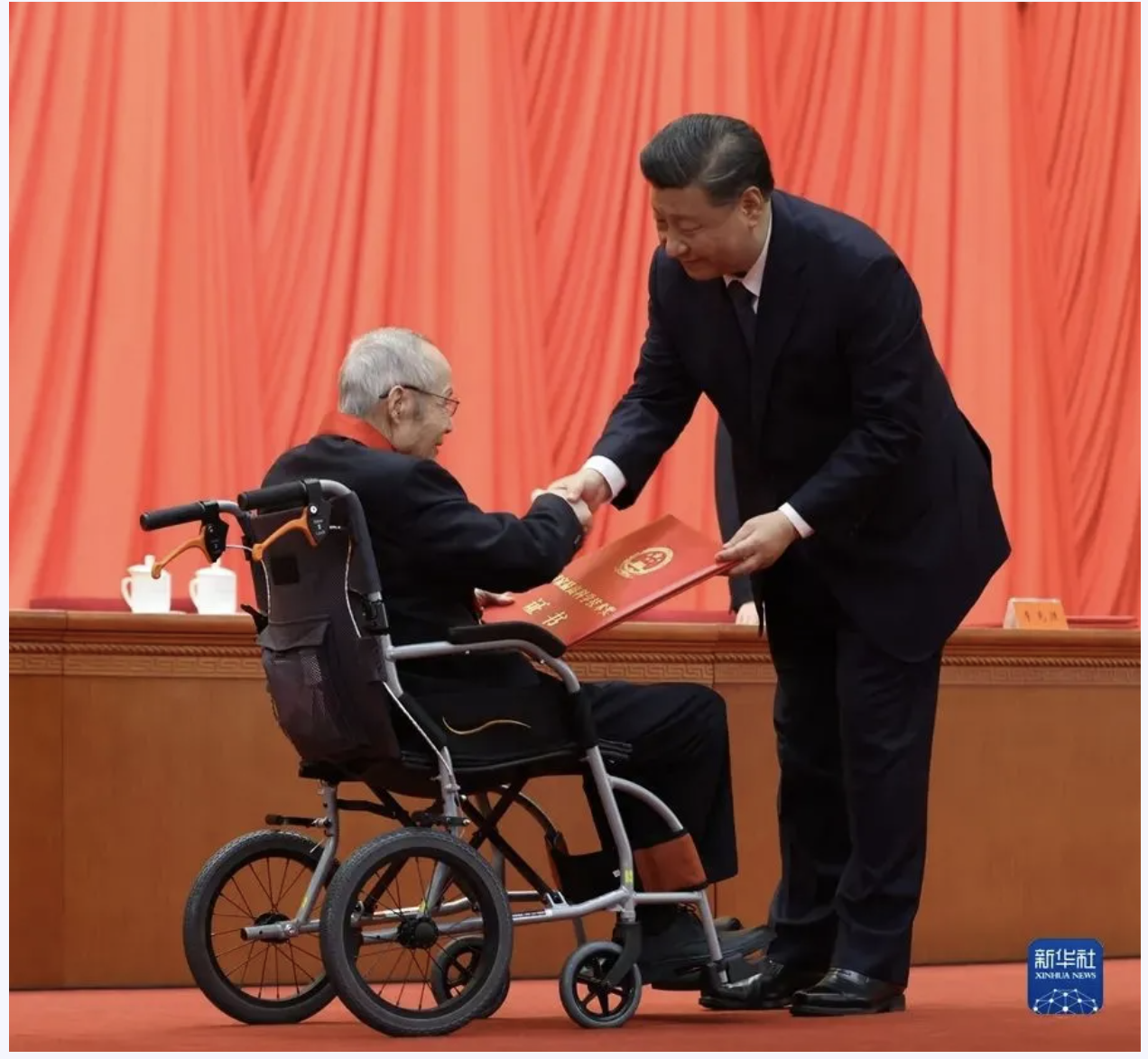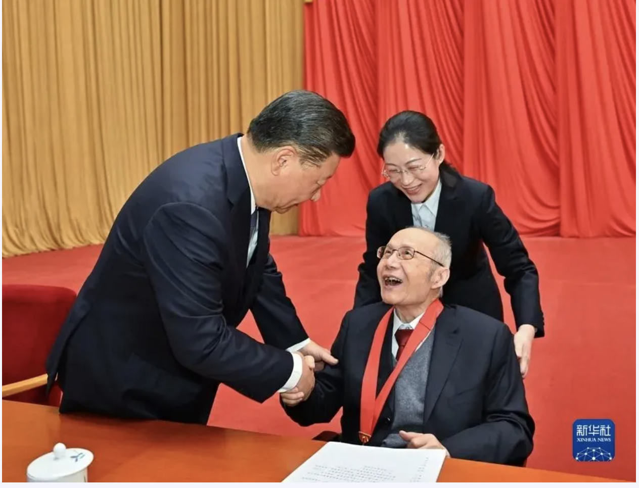 习近平向获得2020年度国家最高科学技术奖的顾诵芬院士颁奖。新华社记者 庞兴雷 摄