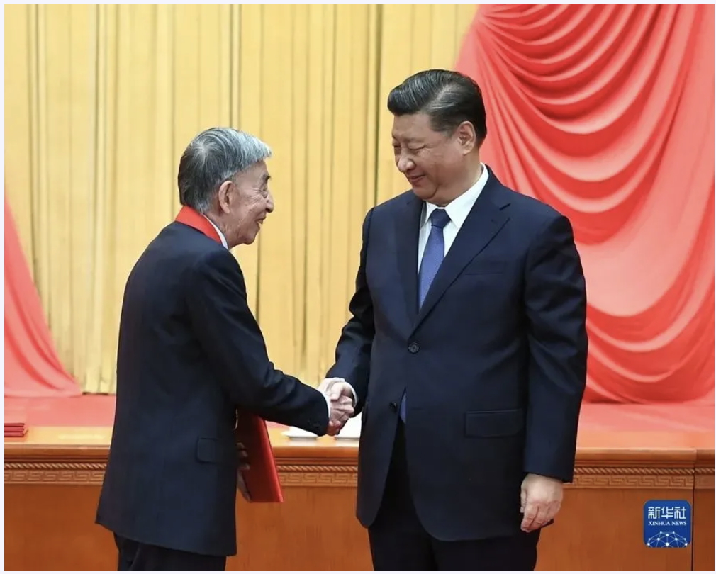 习近平向获得2020年度国家最高科学技术奖的王大中院士颁奖。新华社记者 谢环驰 摄